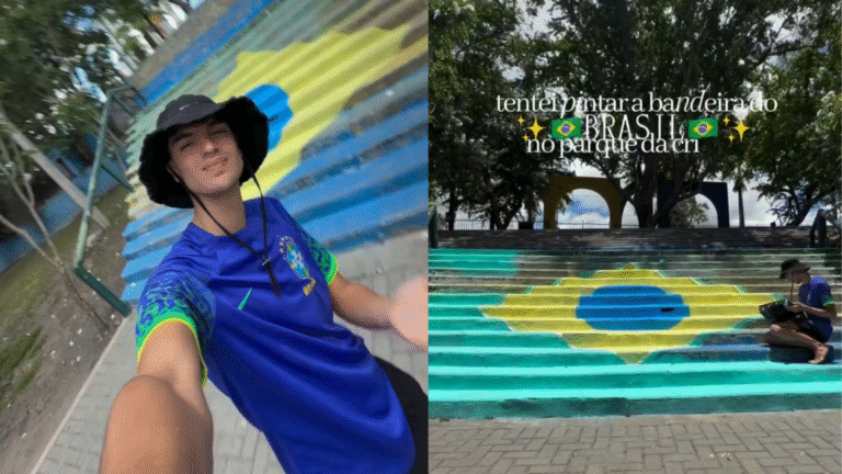 Destaques Jovem pinta bandeira do Brasil em escadaria do Parque da Criança, em Campina Grande Um jovem pintou a bandeira do Brasil em uma das escadarias do Parque da Criança, em Campina Grande. O momento em que ele realiza a Leia Mais ➡️ 16/03/2026